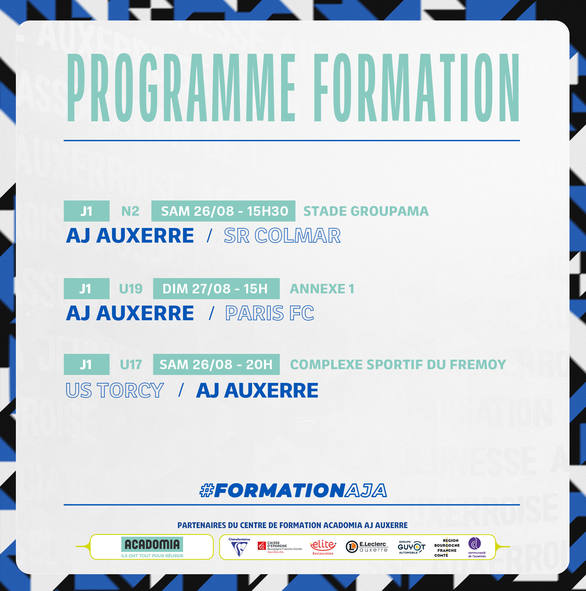 Actualités Le programme du week-end pour la Formation AJA