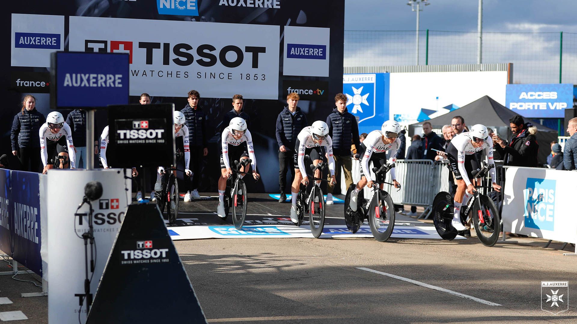 Accueil / Galeries Photos / Le départ de la 3e étape du Paris-Nice devant l’Abbé Deschamps