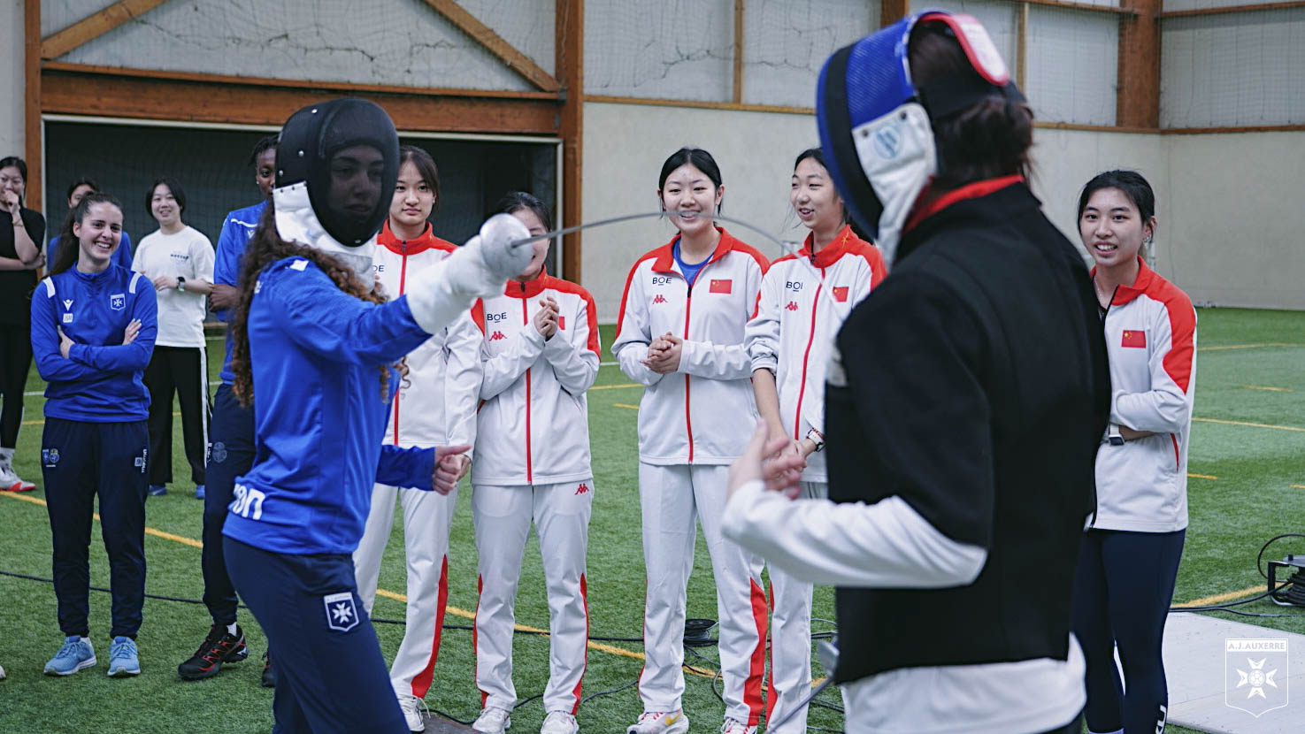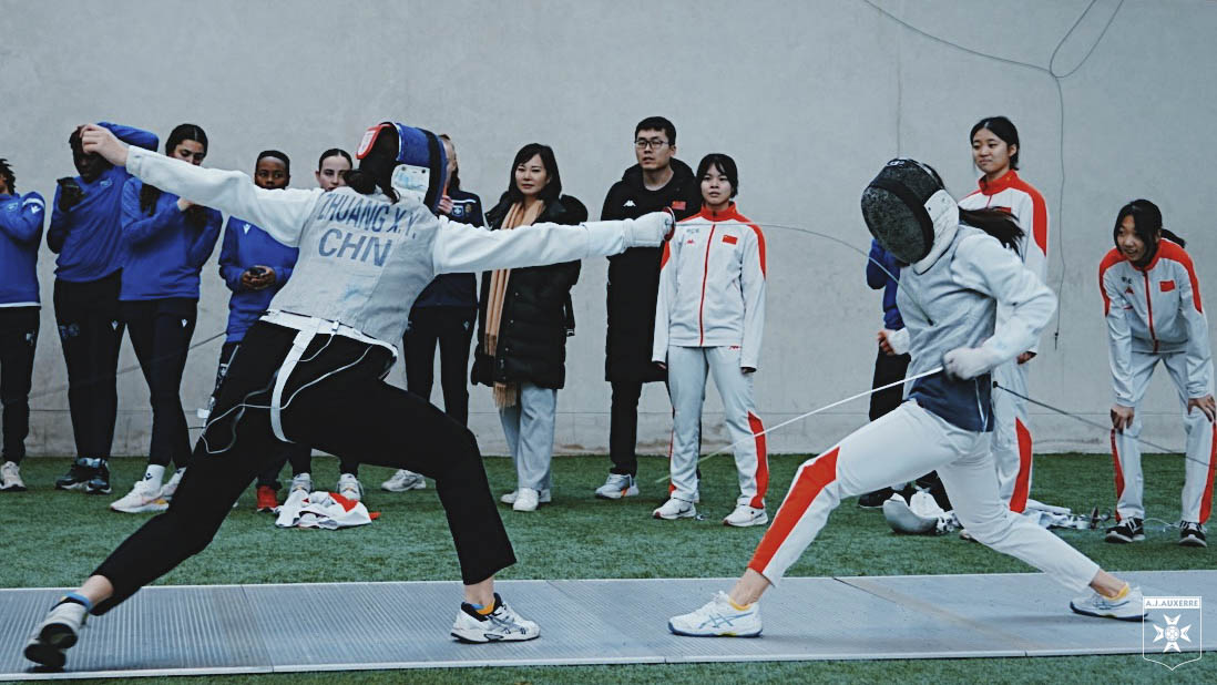 Les fleurettistes chinoises ont profité de leur présence à Auxerre pour faire découvrir leur discipline aux joueuses de l’AJA-Stade, avant un « match retour » durant lequel elles ont pu s’initier au ballon rond.