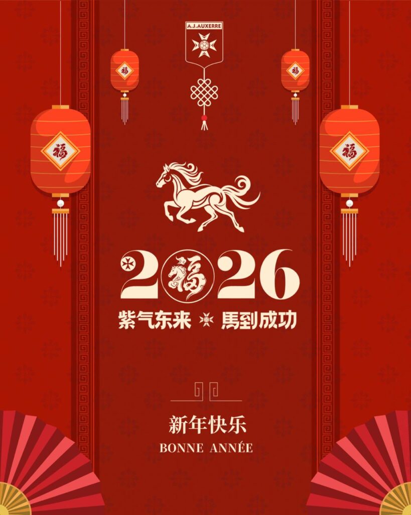 Pour saluer l’entrée dans l’année du Cheval de feu, les joueurs de l’AJA porteront par ailleurs un maillot collector marqué de ce symbole de force et d’audace et sur lequel leur nom sera floqué en mandarin. Ces maillots seront ensuite mis en vente aux enchères sur un site spécialisé au profit de la Fondation « Horizon AJA ».