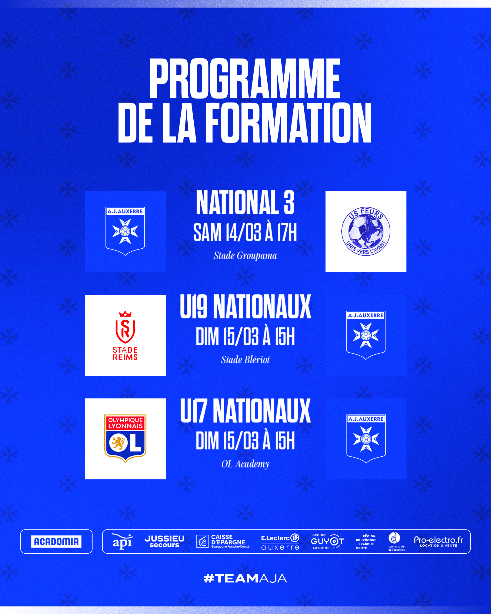 U19 Nationaux – J21 : Stade de Reims – AJA (Dimanche 15 mars à 15h, Stade Blériot)