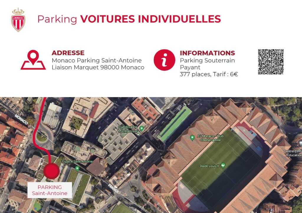 Les véhicules légers doivent se garer au Parking Saint-Antoine, Liaison Marquet, 98000 Monaco. Ce parking est payant (6 euros).